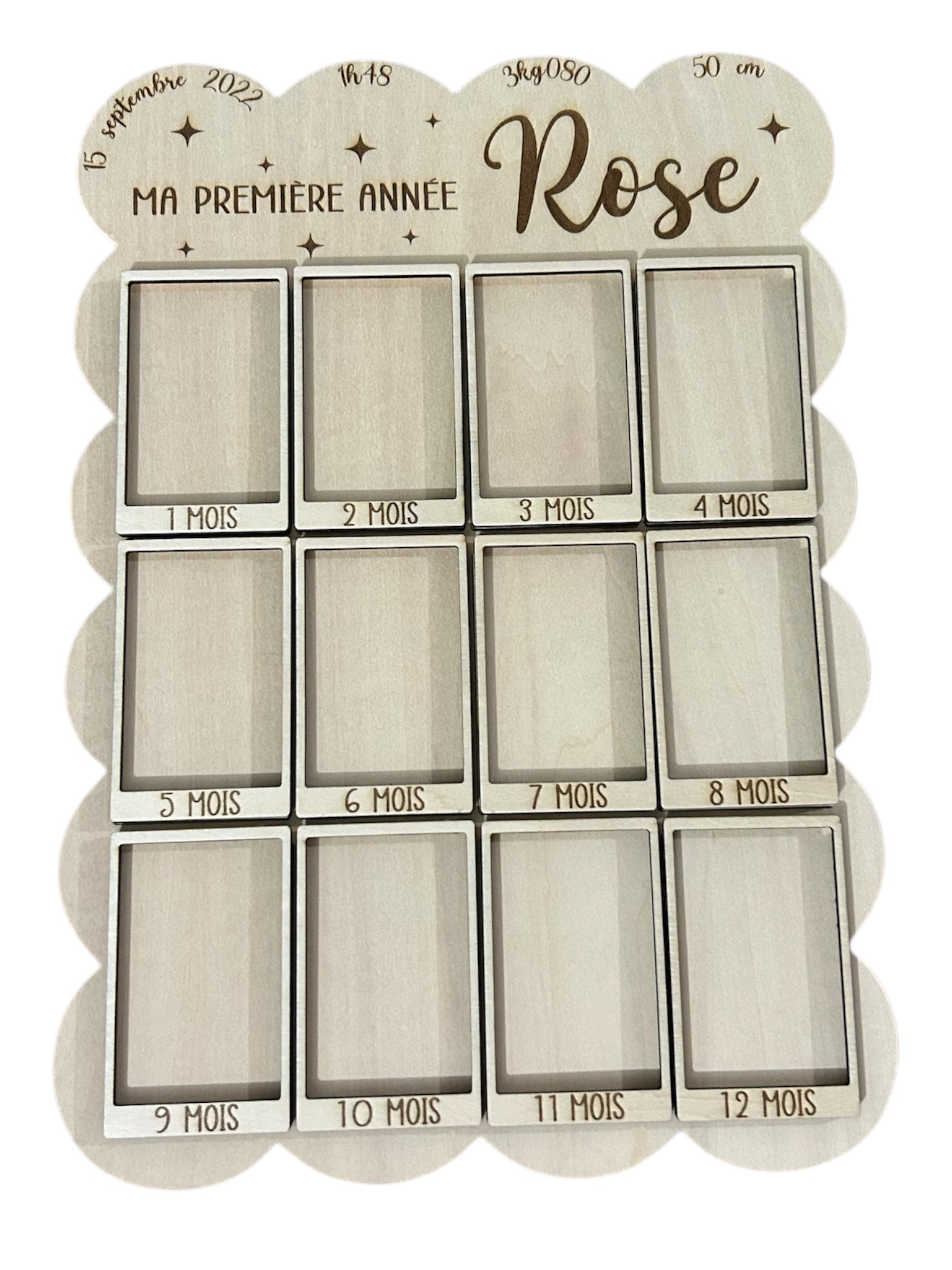 Immortalisez chaque moment de la première année de votre bébé avec le porte photo en bois "Ma première année".